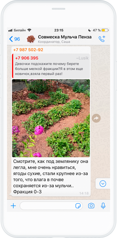 Например, минимальный заказ мульчи – всего 10 мешков. При этом цена на неё от 177 руб. за мешок 60 литров (зависит от фракции и города).
